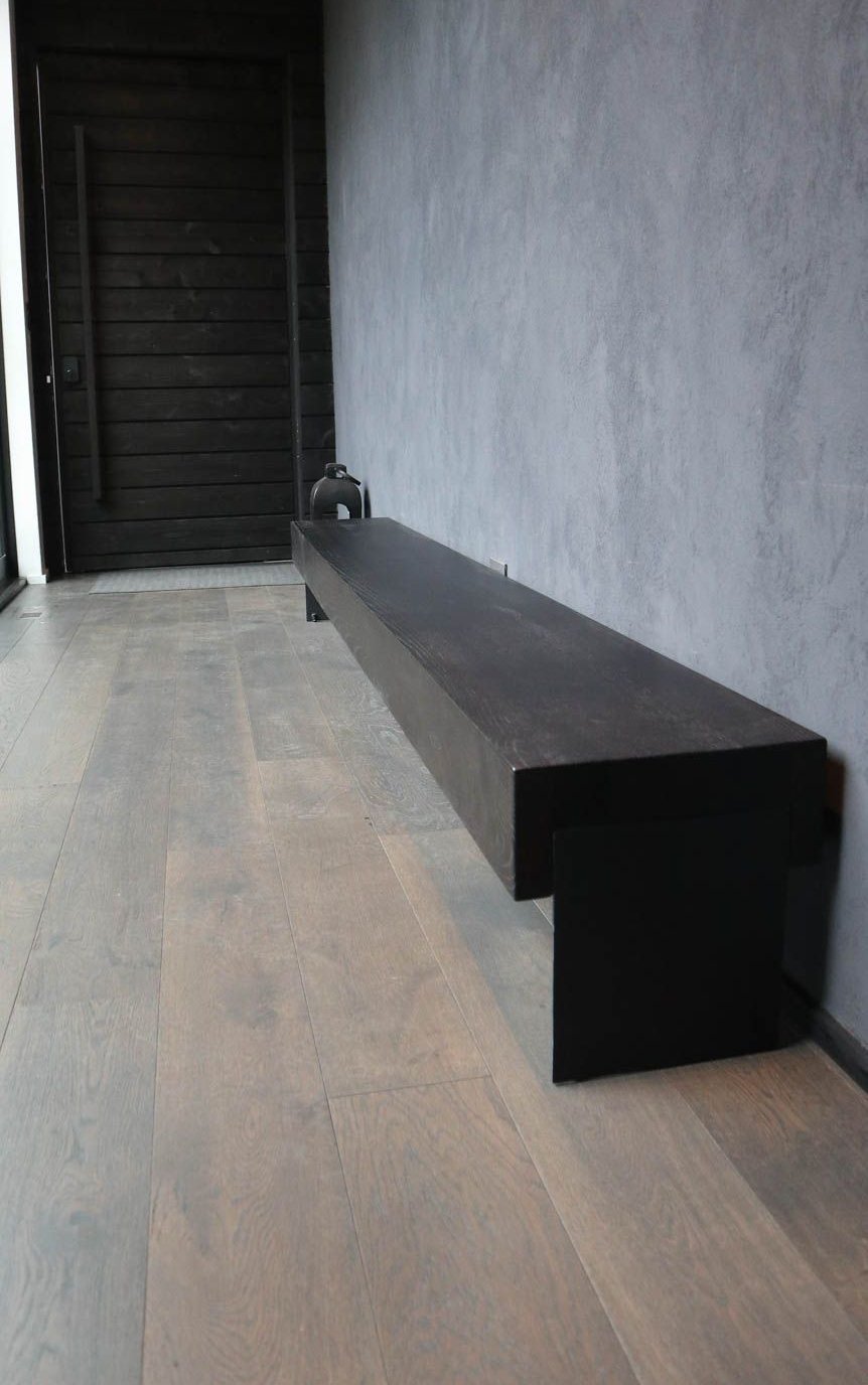Butcher Block Bench Ash Recessed Metal Sides Black Espresso Flat Flatter Black