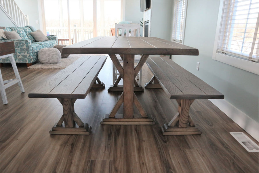 Craftsman Bench Quarter Sawn Red Oak Thick Top Clean Edge No Distress Custom Color