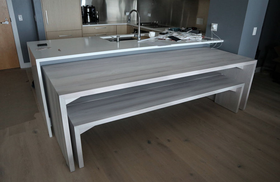 Waterfall Bench Ash Standard Top No distress Clean Edge No Grooves Whitewash Flat