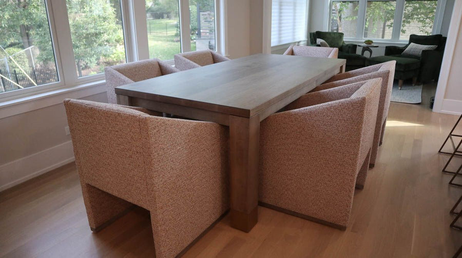 Arthur Table 40x102x30 3.5 Apron Hardwood Hick Top Timber Legs Heavy Saw Scuffing Marks Uneven Boards Espresso Cherry Med Flat Clear Lodge Chairs 3 683x1024
