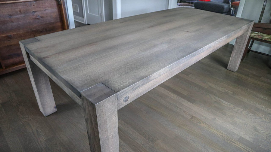 40x88x30 flush leg 4 in leg small overhang solid hard maple thick top clean edge no distress no grooves espresso gray flat bench to match 2 1280x853