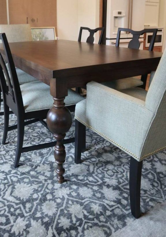 Northbrook 120x44x30 custom turned legs 3.5 tall apron with 2.5 overhang solid ash thick top 3 4 roundover on edge no grooves light distress prado more brown black shadow 714x1024