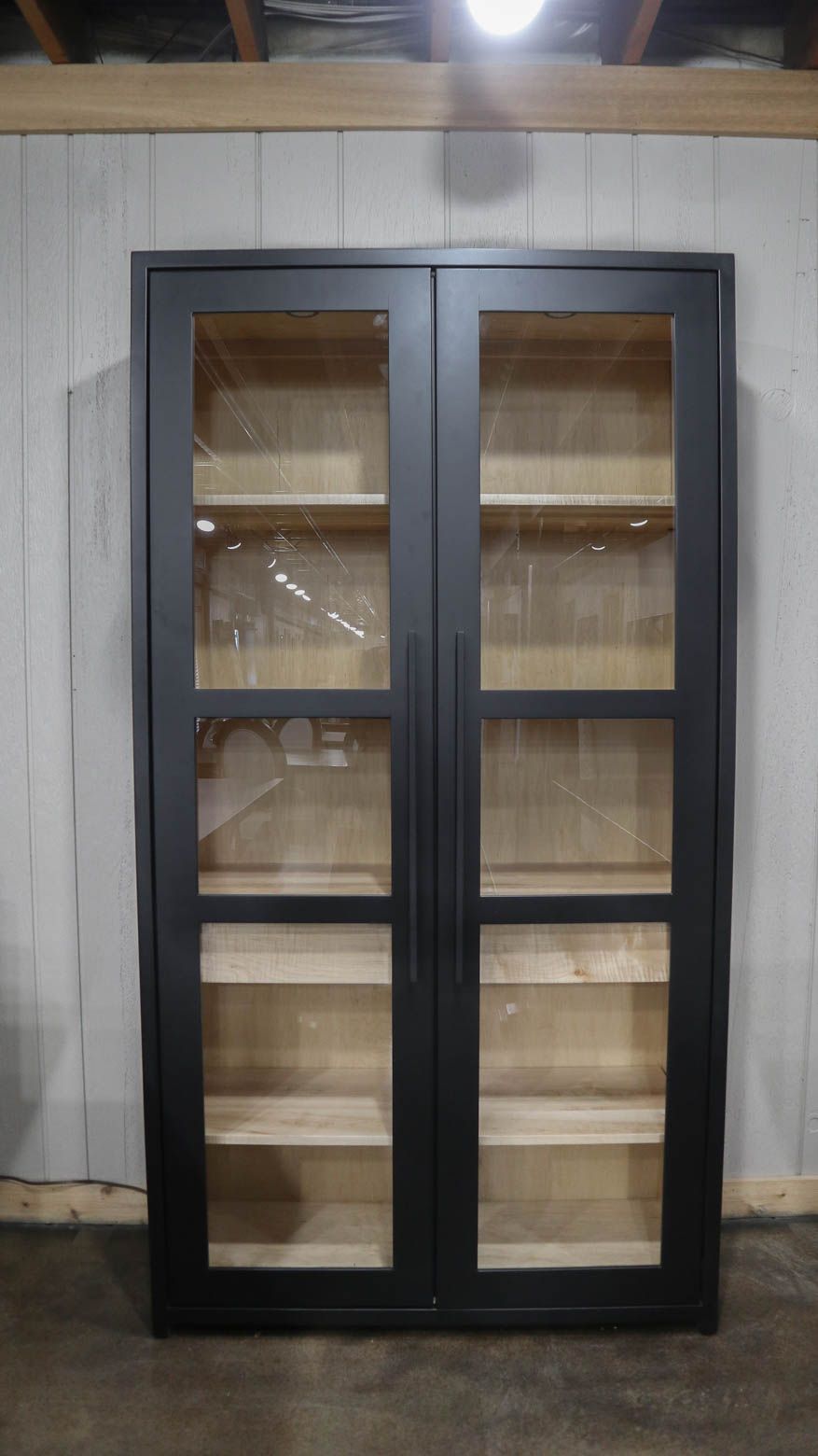 Naperville-20x68x38-Houston-Wine-Server-Hickory-3-4-disrress-on-top-5-6-random-rounding-Prado-Black-Shadow-Satin-K558-SI-Hardware