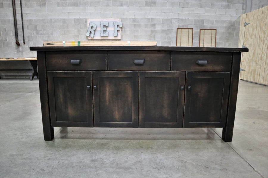 Beaumont Buffet Brown Maple Ebony with Scuffing no distress flat clear