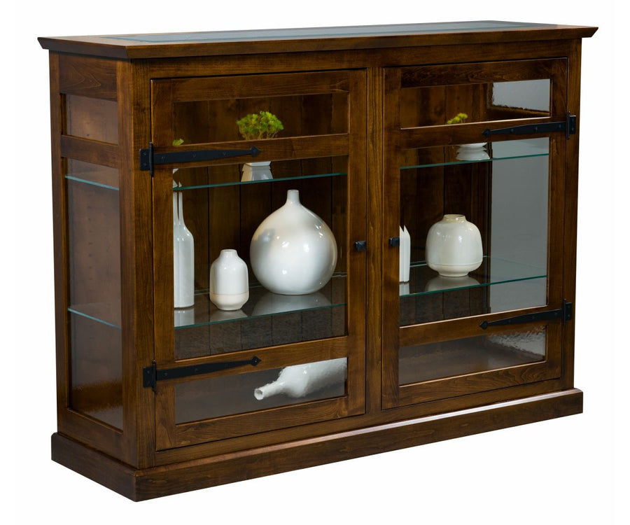 Chicago 20x68x38 Houston Buffet two door two drawer wine rack rough sawn brown maple Almond Flat