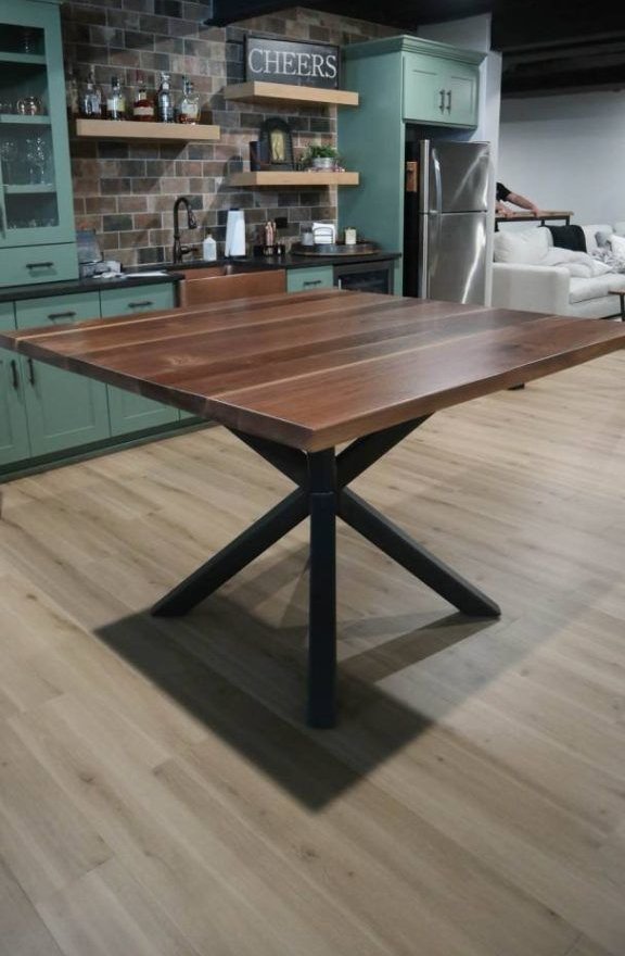 Naperville 55x55x36 Double Metal X walnut top thick top medium distress natural wavy edge natural satin natural steel base 1 576x1024