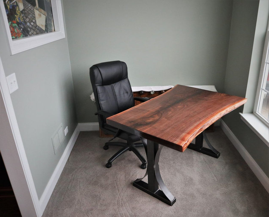 36x48x30 desk walnut slab bark removed no distress high gloss metal arched base 3 in pushed to ends 2 1273x1024