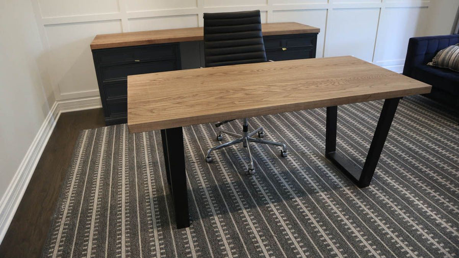 Lincolnshire 34x58 desk custom metal base 1.25 tubing drawers walnut top clean edge no distress natural flat Black Jack 1280x705